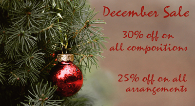 Between December 1st and 31st, prices will be reduced by 30% on all compositions and 25% on all arrangements.